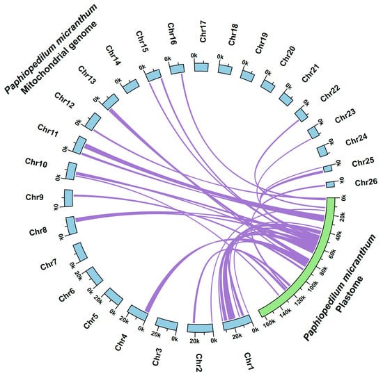 Schematic diagram of gene transfer between the plastome and mitogenome of Paphiopedilum micranthum.