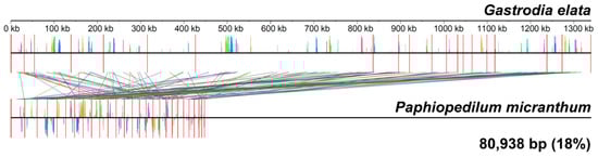 The colinear analysis of the mitogenome of Paphiopedilum micranthum and Gastrodia elata.