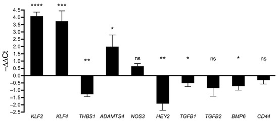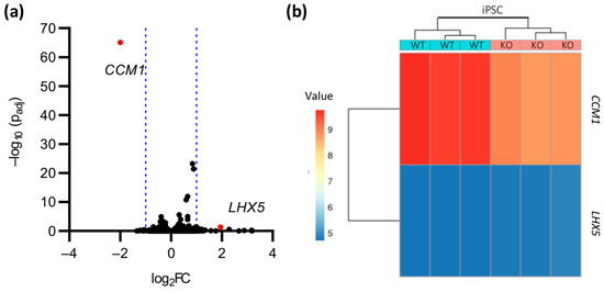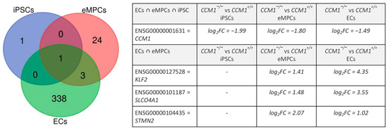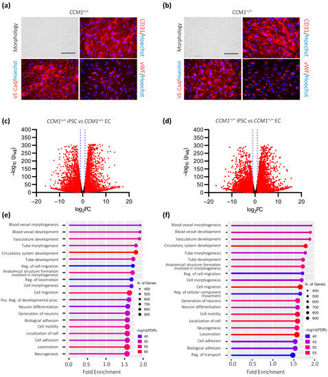 2.2. Minor Gene Expression Differences in CCM1−/− iPSC and CCM1−/− iPSC-Derived eMPCs