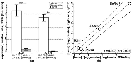2.2. Quantitative PCR (qPCR)-Based Selective Verification of the Novel PAG-Related DEGs of the Tame and Aggressive Rats
