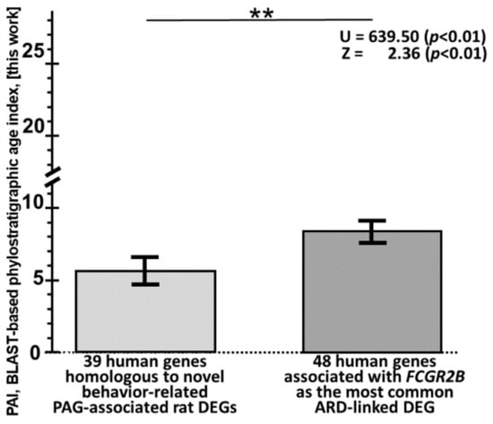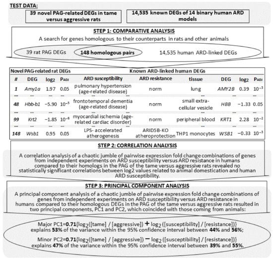 2.5. Searching for ARD Molecular Markers among Human Genes Orthologous to 39 Novel PAG-Related DEGs of the Tame and Aggressive Rats