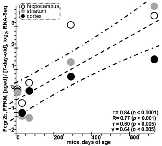 3.2. Excess of Rat Fcgr2b Identified as A Molecular Marker for ARDs Is Consistent with Independent RNA-Seq Data on the Rise in the Levels of Murine Fcgr2b in Astrocytes with Age