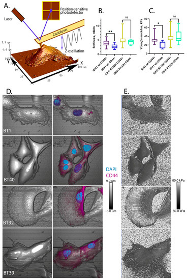 2.3. CD44+ Cells Are More Rigid Than CD44- Cells in IDH1 Wild-Type but Not in IDH1 R132H Mutant Gliomas