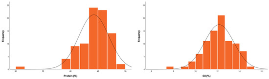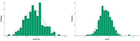 2.1. Phenotypic Variation in the Protein and Oil Content