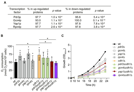 2.2. The Transcription Factors Yap1p and Rpn4p Mediate the Induction of Mitochondrial Respiration in cdh1Δ Cells