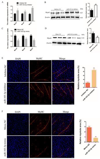 2.2. miR-103-3p Inhibited the Differentiation of C2C12 Cells