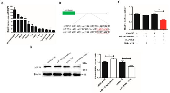 Zhang, X.; Huang, S.; Niu, X.; Li, S.; Wang, J.; Ran, X. miR-103-3p Regulates the Differentiation and Autophagy of Myoblasts by Targeting MAP4. Int. J. Mol. Sci. 2023, 24, 4130. https://doi.org/10.3390/ijms24044130