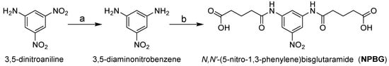 Synthetic route for NPBG. Reagents and conditions: (a) NH4Cl, EtOH, H2O, 50 °C, 5 min, and then Na2S·9H2O, H2O, 60–70 °C, 30 min; (b) glutaric anhydride, MeCN, reflux, 1 h.