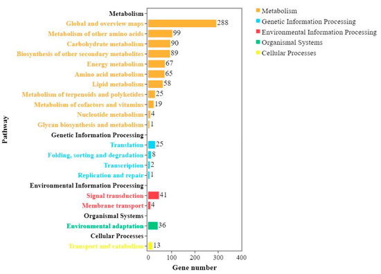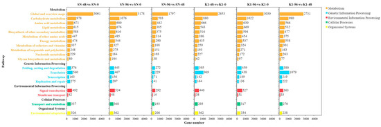 | K1-96 vs. K1-0 | ko01100 | Metabolic pathways | 2877 (50.44%) |