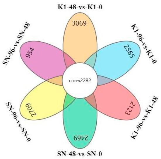 | K1-96 vs. K1-48 | ko01100 | Metabolic pathways | 2604 (46.11%) |