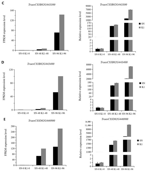 | TraesCS5B02G443300 | ACGGGGAGAACCTCTACGGA | CAGATGATGAACACACCGTC |