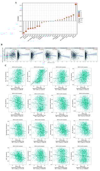 TIMER (https://cistrome.shinyapps.io/timer/ (accessed on 9 June 2022)) [30] was used to establish the relationship between NUF2 and the immune response. Additionally, TIMER was used to determine the relationship between NUF2 expression and six types of immune infiltrates (B cells, CD4+ T cells, CD8+ T cells, neutrophils, macrophages, and dendritic cells) in breast cancer. The scatter plot of the correlation between NUF2 expression and immune cell infiltration was drawn. To increase the accuracy of the TIMER website, we also used the XIANTAO website for verification.