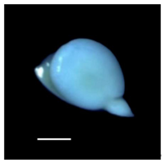 Dormant seeds of uniform texture with an average weight of 2.04 mg, an average moisture content of 5.79%, and an average viability of 88.89% were selected, soaked in distilled water at 20 ± 5 °C for 48 h and 0.2% (v/v) NaClO solution for 10–15 min, and finally rinsed with water. The coat of these disinfected seeds was stripped on ice (to avoid enzyme inactivation), and the peeled embryos were used for the subsequent experiments [14]. The embryo obtained after pre-treatment is shown in Figure 7.