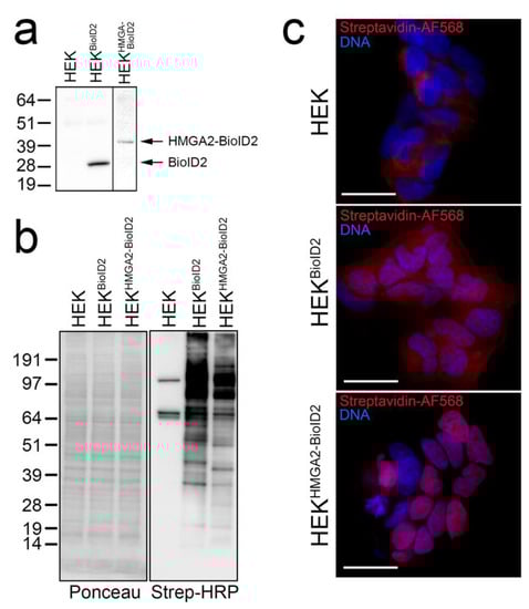 2.1. HMGA2-BioID2 Fusion Protein Biotinylates Nuclear Proteins