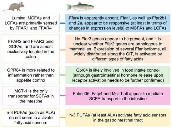 Calo J, Comesaña S, Alonso-Gómez ÁL, Soengas JL, Blanco AM. Fatty Acid Sensing in the Gastrointestinal Tract of Rainbow Trout: Different to Mammalian Model? International Journal of Molecular Sciences. 2023; 24(5):4275. https://doi.org/10.3390/ijms24054275