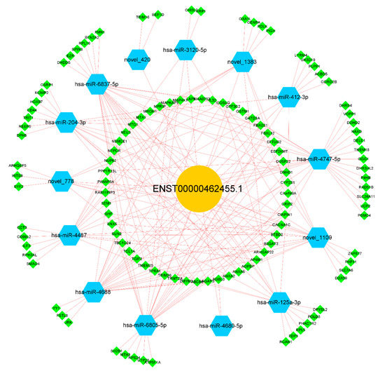 The ceRNA network of lncRNA ENST00000462455.1.