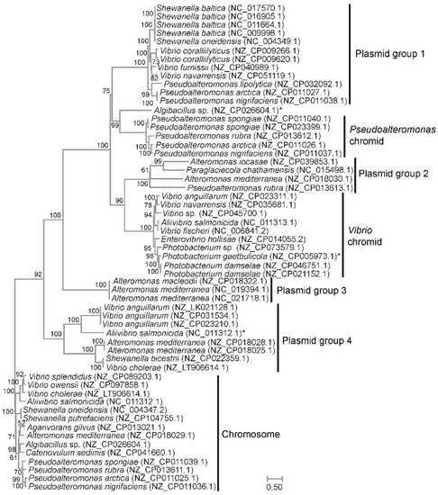 2.2. Separate Origin of Chromids in Vibrionaceae and Pseudoalteromonas