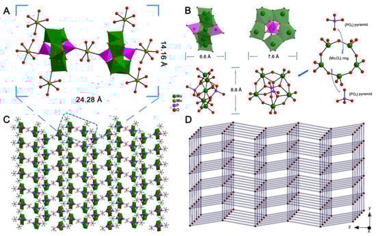- Hua, J.A.; Wei, X.M.; Bian, Y.J.; Ma, X.; Hao, L.; Sun, J.R.; Fan, J.J.; Niu, Y.L.; Wang, Y.Q. A nanoscale polymolybdate built by two hexavacant Keggin-type fragments via a novel {Ca6P6O38} cluster with β-sheet conformation modulation ability. CrystEngComm 2022, 24, 3153–3159. [Google Scholar] [CrossRef]