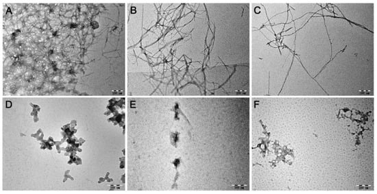 - Ahmed, M.; Davis, J.; Aucoin, D.; Sato, T.; Ahuja, S.; Aimoto, S.; Elliott, J.I.; Van Nostrand, W.E.; Smith, S.O. Structural conversion of neurotoxic amyloid-β1–42 oligomers to fibrils. Nat. Struct. Mol. Biol. 2010, 17, 561–567. [Google Scholar] [CrossRef]
