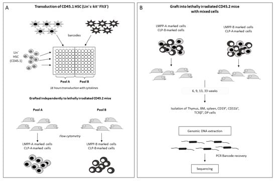 Michaels V, Chalabi S, Legrand A, Renard J, Tejerina E, Daouya M, Fabrega S, Megret J, Olaso R, Boland A, et al. Co-Transplantation of Barcoded Lymphoid-Primed Multipotent (LMPP) and Common Lymphocyte (CLP) Progenitors Reveals a Major Contribution of LMPP to the Lymphoid Lineage. International Journal of Molecular Sciences. 2023; 24(5):4368. https://doi.org/10.3390/ijms24054368