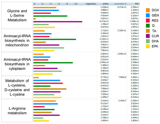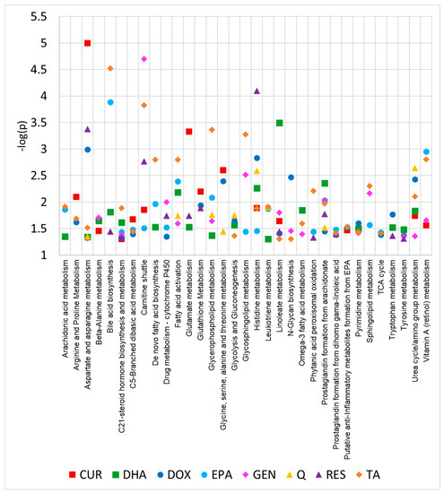APA StyleRushing, B. R., Wiggs, A., Molina, S., Schroder, M., & Sumner, S. (2023). Metabolomics Analysis Reveals Novel Targets of Chemosensitizing Polyphenols and Omega-3 Polyunsaturated Fatty Acids in Triple Negative Breast Cancer Cells. International Journal of Molecular Sciences, 24(5), 4406. https://doi.org/10.3390/ijms24054406