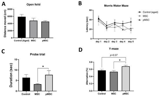 - Park, D.; Yang, G.; Bae, D.K.; Lee, S.H.; Yang, Y.-H.; Kyung, J.; Kim, D.; Choi, E.-K.; Choi, K.-C.; Kim, S.U.; et al. Human adipose tissue-derived mesenchymal stem cells improve cognitive function and physical activity in ageing mice. J. Neurosci. Res. 2013, 91, 660–670. [Google Scholar] [CrossRef]