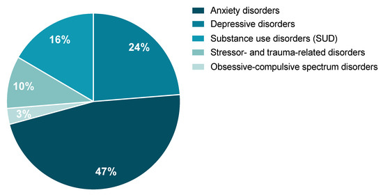 A review of the potential involvement of the tPA/PAI-1 system in stress-related psychiatric disorders as they are described by the Diagnostic and Statistical Manual of Mental Disorders (DSM-5) and the International Classification of Diseases, 11th Revision (ICD-11) was performed. According to the literature, the tPA/PAI-1 system could, to a variable extent, play an important role in the occurrence of stress-related psychiatric disorders. These are characterized by major clinical alterations in the individual’s cognitive state, emotion regulation, or behavior. We will focus on the literature regarding the tPA/PAI-1 system in particular on (1) anxiety disorders, (2) depressive disorders, (3) substance use disorders (SUD), (4) obsessive-compulsive spectrum disorders, and (5) stressor- and trauma-related disorders. From the study conducted by Wittchen and colleagues, when calculating the percentage prevalence of these five disorders as part of a whole, anxiety and depression represent the most commonly observed stress-related disorders, while obsessive-compulsive spectrum disorders are the least represented class (Figure 6) [8]. It is important to mention that, although some of these disorders have been shown to elicit distinct symptoms, they share some significant overlapping. Indeed, common symptoms are observed in anxiety, major depressive disorder (MDD), and PTSD. For example, difficulties with concentration, fatigue, irritability, memory and sleep troubles, negative thoughts, extreme worry, etc.