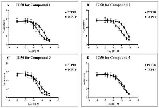 4.2.1. The Phosphatases Activity Assay and the Determination of IC50 for Tested Compounds