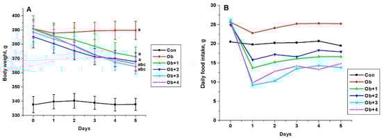 | Ob + 4 | 5.72 ± 0.30 a | 5.24 ± 0.25 a | 1.65 ± 0.18 a | 1.06 ± 0.13 a,c | 9.63 ± 1.57 a | 5.61 ± 0.89 a | 3.17 ± 0.25 a | 1.90 ± 0.16 a,b,c |