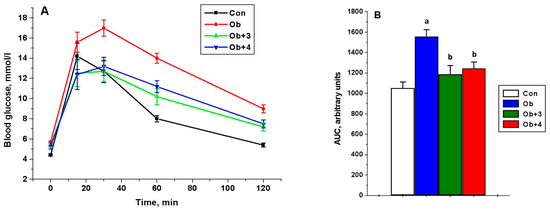 | Ob + 3 | 5.80 ± 0.31 a | 5.36 ± 0.31 a | 1.51 ± 0.18 a | 0.93 ± 0.13 b,c | 8.96 ± 1.46 a | 5.12 ± 0.97 b | 2.93 ± 0.42 a | 1.52 ± 0.21 b,c |
