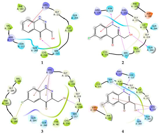 2.5. Docking Simulation of Compounds 1–4 as PTP1B/TC-PTP Inhibitors