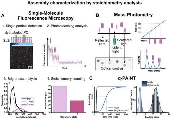 - Danial, J.S.H.; Quintana, Y.; Ros, U.; Shalaby, R.; Margheritis, E.G.; Chumpen Ramirez, S.; Ungermann, C.; Garcia-Saez, A.J.; Cosentino, K. Systematic Assessment of the Accuracy of Subunit Counting in Biomolecular Complexes Using Automated Single-Molecule Brightness Analysis. J. Phys. Chem. Lett. 2022, 13, 822–829. [Google Scholar] [CrossRef]