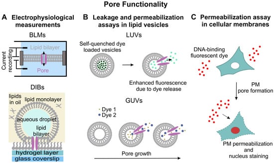 - Ros, U.; Pedrera, L.; Garcia-Saez, A.J. Techniques for studying membrane pores. Curr. Opin. Struct. Biol. 2021, 69, 108–116. [Google Scholar] [CrossRef]