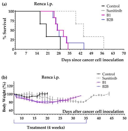 2.2. Diets B1 and B2B Induce Moderate Anticancer Activity in Mice with Renal Cell Carcinoma