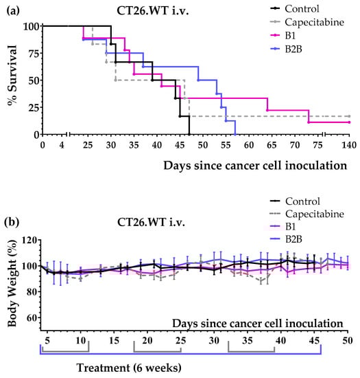 - Kolinsky, K.; Shen, B.-Q.Q.; Zhang, Y.-E.E.; Kohles, J.; Dugan, U.; Zioncheck, T.F.; Heimbrook, D.; Packman, K.; Higgins, B. In vivo activity of novel capecitabine regimens alone and with bevacizumab and oxaliplatin in colorectal cancer xenograft models. Mol. Cancer Ther. 2009, 8, 75–82. [Google Scholar] [CrossRef]