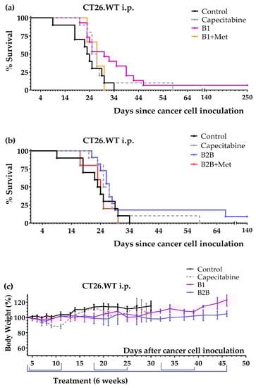 2.3. Diets B1 and B2B Induce Marked Anticancer Activity in Mice with Metastatic Colon Cancer