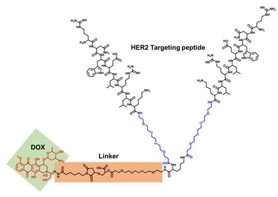 The structures of the HER2-targeting peptide–DOX conjugate (PDC).