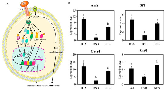 - Rehman, Z.U.; Worku, T.; Davis, J.S.; Talpur, H.S.; Bhattarai, D.; Kadariya, I.; Hua, G.; Cao, J.; Dad, R.; Farmanullah; et al. Role and mechanism of AMH in the regulation of Sertoli cells in mice. J. Steroid Biochem. Mol. Biol. 2017, 174, 133–140. [Google Scholar] [CrossRef]