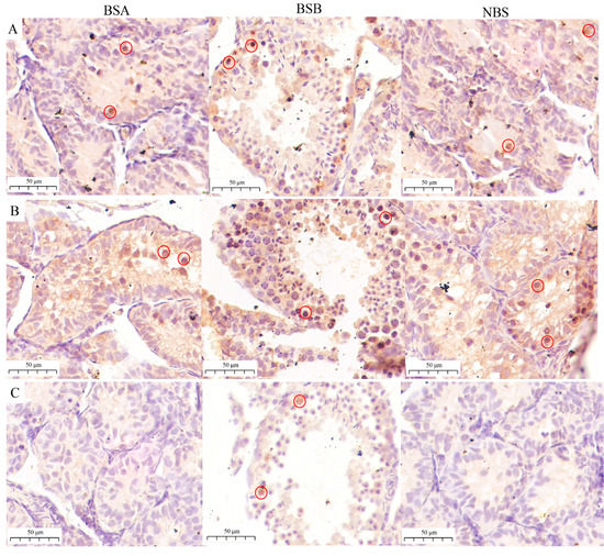 3.2. The Spermatogenic Arrest of the Non-Breeders Occurred at the Spermatogonia Stage