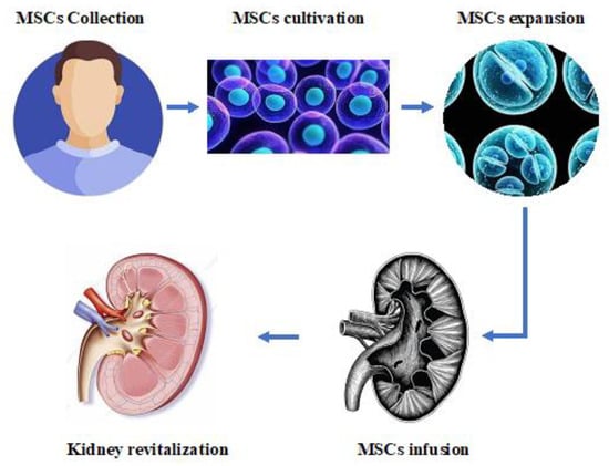 - Bochon, B.; Kozubska, M.; Surygala, G.; Witkowska, A.; Kuzniewicz, R.; Grzeszczak, W.; Wystrychowski, G. Mesenchymal Stem Cells-Potential Applications in Kidney Diseases. Int. J. Mol. Sci. 2019, 20, 2462. [Google Scholar] [CrossRef]