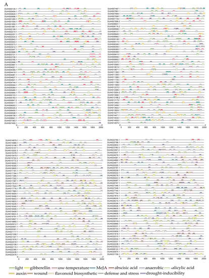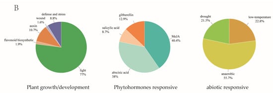 - Rombauts, S.; Dehais, P.; Van Montagu, M.; Rouze, P. PlantCARE, a plant cis-acting regulatory element database. Nucleic Acids Res. 1999, 27, 295–296. [Google Scholar] [CrossRef] [PubMed]