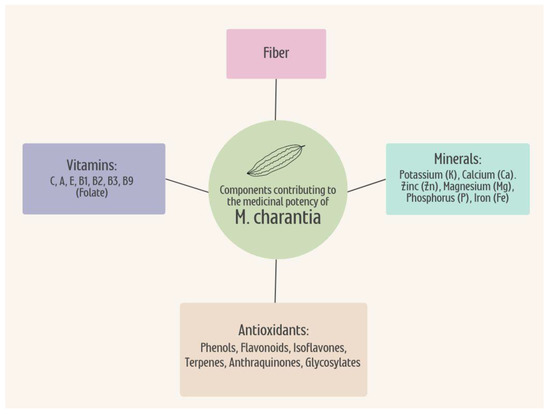 For thousands of years, M. charantia has been used as an herbal remedy throughout many countries and regions, as its components provide impactful beneficial effects [64]. The plant itself, especially its fruit and seeds, contains significant pharmacological effects that have been utilized in the treatment of DM as well as AD as recent evidence suggests its plausible role in its pathology [64,65]. The phytoconstituents within bitter melon activate antihyperglycemic, antioxidant, antidiabetic, hepatoprotective, antibacterial, and anti-inflammatory activities in tissues and cellular pathways [64,65,66,67,68,69,70].