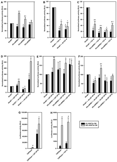 - Aoki, M.; Hecht, A.; Kruse, U.; Kemler, R.; Vogt, P.K. Nuclear endpoint of Wnt signaling: Neoplastic transformation induced by transactivating lymphoid-enhancing factor 1. Proc. Natl. Acad. Sci. USA 1999, 96, 139–144. [Google Scholar] [CrossRef]