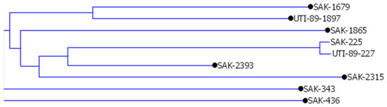 These sequences allowed the identification of five UPEC genomes (including one genome of ABU strain), one AIEC genome, but with the confirmed high similarity to the uropathogenic UPEC strain (E. coli UM146) [19], and one genome belonging to the NMEC sub-pathotype. We also did not identify most of the typical virulence factors of the ExPEC pathotype, which indicates partial similarity of such genomic sequences to elements of genomes of other E. coli strains. In this work, we did not conduct this research in more detail. We focused only on using comparative genomic analyses and finding such elements that differentiate the genomes of the two groups of very similar pathogens that can be used as markers of a specific E. coli pathotype. Based on the results shown in Table 3, it is possible to design appropriate genetic markers that will enable the differentiation described above by the multiplex-PCR or dot blot hybridization reaction.