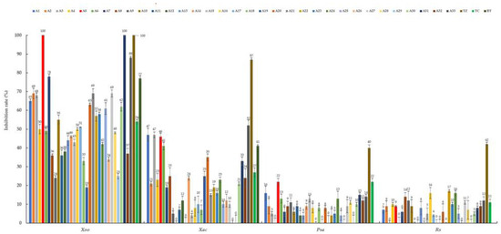 2.8. Changes in Xoo Defense Enzyme Activity by Compound A5