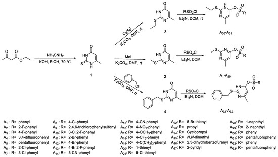 3.3.3. Preparation of Title Compound A1–A29 [23,35]