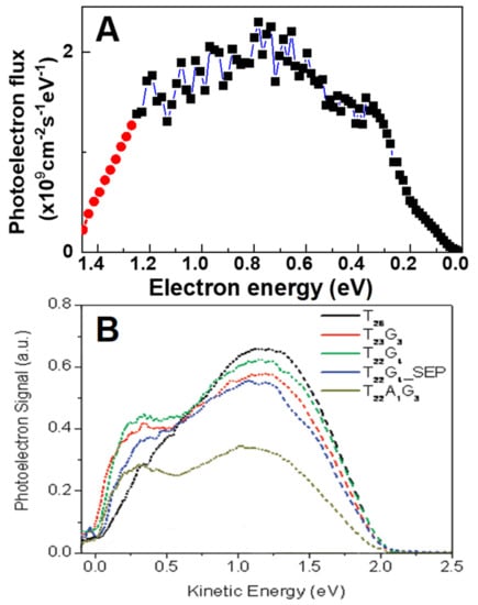 - Axnanda, S.; Scheele, M.; Crumlin, E.; Mao, B.; Chang, R.; Rani, S.; Faiz, M.; Wang, S.; Alivisatos, A.P.; Liu, Z. Direct work function measurement by gas phase photoelectron spectroscopy and its application on PbS nanoparticles. Nano Lett. 2013, 13, 6176–6182. [Google Scholar] [CrossRef]