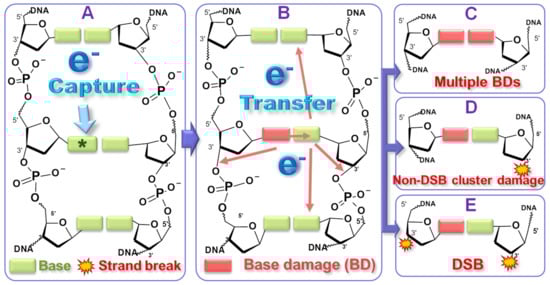 - Kumar, A.; Becker, D.; Adhikary, A.; Sevilla, M.D. Reaction of electrons with DNA: Radiation damage to radiosensitization. Int. J. Mol. Sci. 2019, 20, 3998. [Google Scholar] [CrossRef] [PubMed]