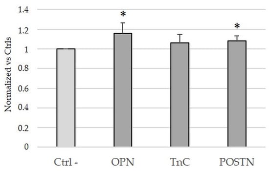 2.4. Treatment with OPN and POSTN but Not with TnC Slightly Sustained Cell Viability in iCCA Cells In Vitro