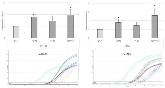 2.6. Treatment with OPN, TnC, and POSTN Induced iCCA Cells to Acquire Cancer-Stem-Cell-like Phenotypic Traits